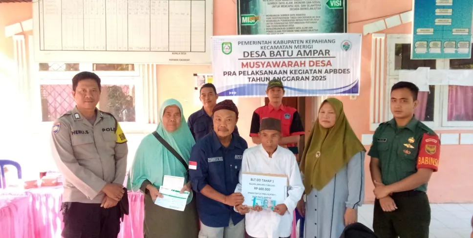 Kepahiang, Siberbengkulu.co -- Pemerintah Desa Batu Ampar, Kecamatan Merigi, Kabupaten Kepahiang, resmi menyalurkan Bantuan Langsung Tunai Dana Desa (BLT-DD) Tahun Anggaran 2025 kepada 21 Keluarga Penerima Manfaat (KPM). Penyaluran BLT-DD tahap pertama ini dilakukan untuk dua bulan sekaligus, yakni Januari dan Februari, dengan total nominal Rp 600.000 per KPM, yang mencakup bantuan sebesar Rp 300.000 per bulan.