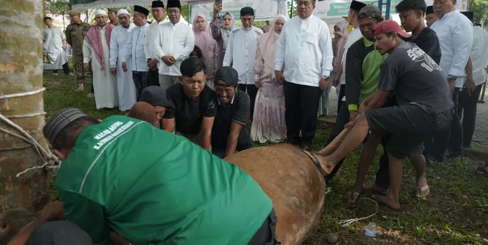Asahan, Siberbengkulu.co -- Pemerintah Kabupaten Asahan melaksanakan kegiatan penyembelihan hewan kurban dalam rangka memperingati Hari Raya Idul Adha 1446 H/2025 M yang dipusatkan di Alun-Alun Rambate Rata Raya Kisaran, Jumat pagi (06/06/2025).