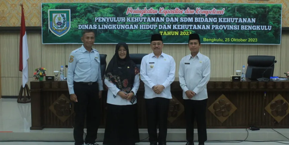 Bengkulu, Siberbengkulu.co -- Asisten II Pemprov R.A. Denni membuka acara Peningkatan Kapasitas dan Kompetensi Penyuluh Kehutanan dan SDM Bidang Kehutanan Dinas Lingkungan Hidup dan Kehutanan Provinsi Bengkulu di Ruang Pola Provinsi Bengkulu, Rabu (25/10/2023).