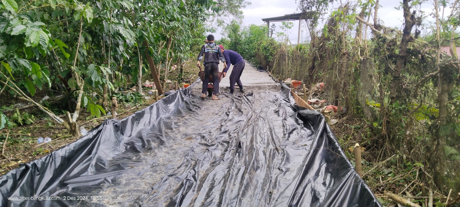 Pembangunan jalan Lingkungan RT 01 Kelurahan Ujan Mas, Senin (02/12). Foto: Ibnu/Siberbengkulu.co