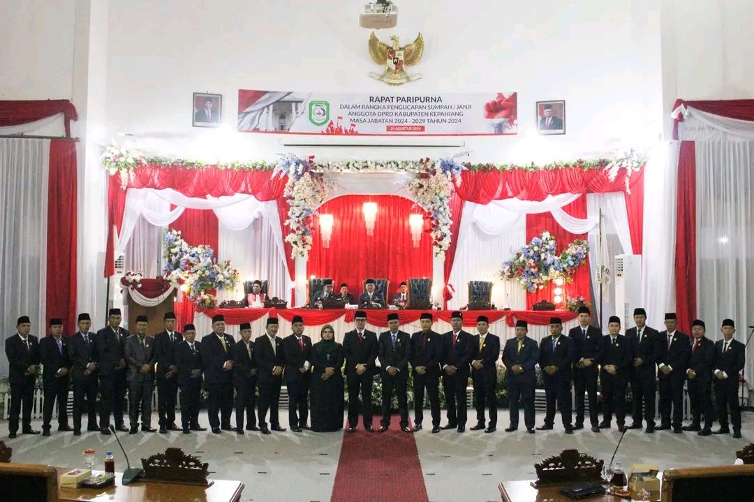 "Setelah selesainya pengucapan sumpah janji anggota DPRD periode 2024-2029, maka terhitung saat itu kami anggota DPRD periode 2019-2024 menyerahkan amanat rakyat kepada anggota DPRD yang baru, untuk melanjutkan tugas pokok dan fungsi serta wewenang selaku anggota DPRD Kabupaten Kepahiang," sampai Andrian Defandra.