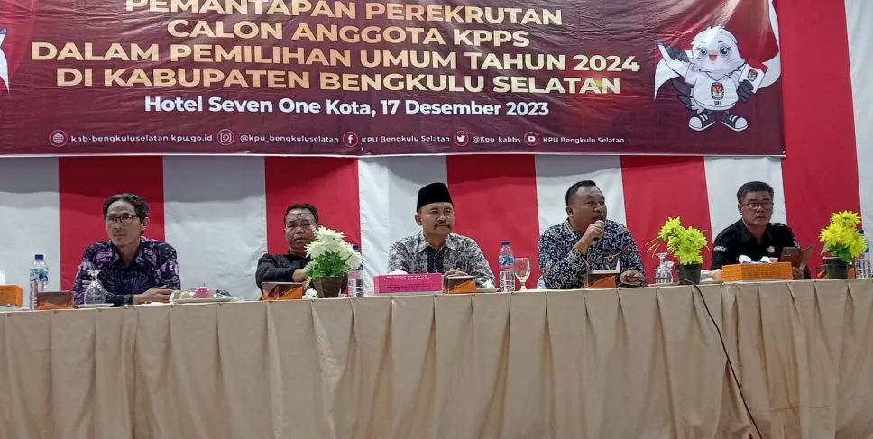 Sebab dalam pleno di tingkat kecamatan, PPS-lah yang hadir, bukan KPPS," ujar Arif dalam rakor pemantapan rekrutmen KPPS Pemilu 2024 yang dihadiri seluruh PPK dan PPS se Kabupaten Bengkulu Selatan, Minggu 17 Desember 2023 di Ball Room Hotel Seven One Kota.