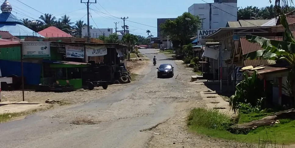 Lubang-lubang yang menganga di beberapa titik menjadi ancaman serius, terutama di musim hujan, di mana genangan air menutupi permukaan jalan dan meningkatkan risiko kecelakaan.