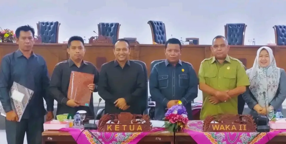Ketua DPRD Kabupaten Kepahiang, Windra Purnawan, S.P. yang memimpin rapat didampingi Anggota DPRD, Ansori M. menyerahkan tiga Raperda Inisiatif kepada utusan masing-masing Pansus.