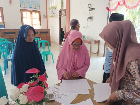 Penyaluran BLT berlangsung tertib dan lancar, disaksikan oleh unsur Badan Permusyawaratan Desa (BPD), Babinsa, Bhabinkamtibmas, serta pendamping desa setempat. (JFS)