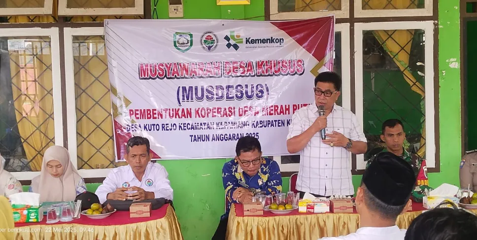 Kepahiang, Siberbengkulu.co -- Pemerintah Desa Kuto Rejo, Kecamatan Kepahiang, Kabupaten Kepahiang, menggelar Musyawarah Desa Khusus (Musdesus) dalam rangka pendirian Koperasi Merah Putih. Acara yang berlangsung pada Kamis (22/5) ini diselenggarakan di Balai Desa Kuto Rejo dan melibatkan seluruh elemen masyarakat.