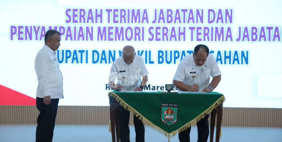 Asahan, Siberbengkulu.co -- Pemerintah Kabupaten Asahan melaksanakan Serah Terima Jabatan Bupati Asahan Periode 2021-2025 kepada Bupati dan Wakil Bupati Asahan periode 2025-2030 di Aula Melati Kantor Bupati Asahan, Rabu (05/03/2025).
