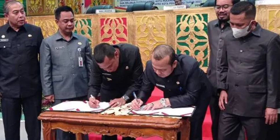Setelah laporan pembahasan selesai dibacakan Banggar, pengesahan ini ditandai dengan penandatanganan persetujuan bersama Pj Walikota Pekanbaru Muflihun dan DPRD Pekanbaru tentang Rancangan Peraturan Daerah (Ranperda) P-APBD 2022 menjadi Peraturan Daerah (Perda).