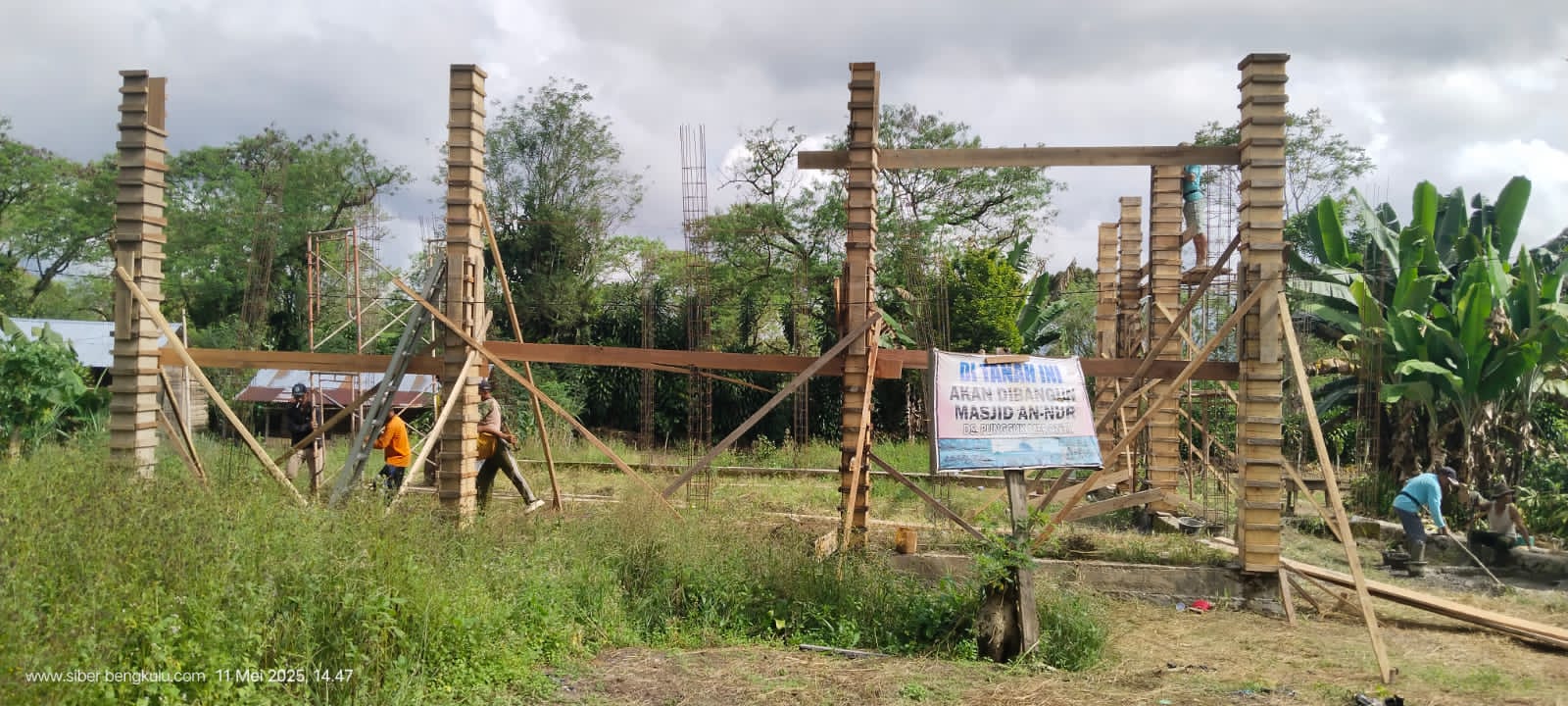 Warga Desa Pungguk Meranti Gotong Royong Bangun Masjid AN-NUR, Harapkan Uluran Tangan Donatur. Foto: Ibnu/Siberbengkulu.co