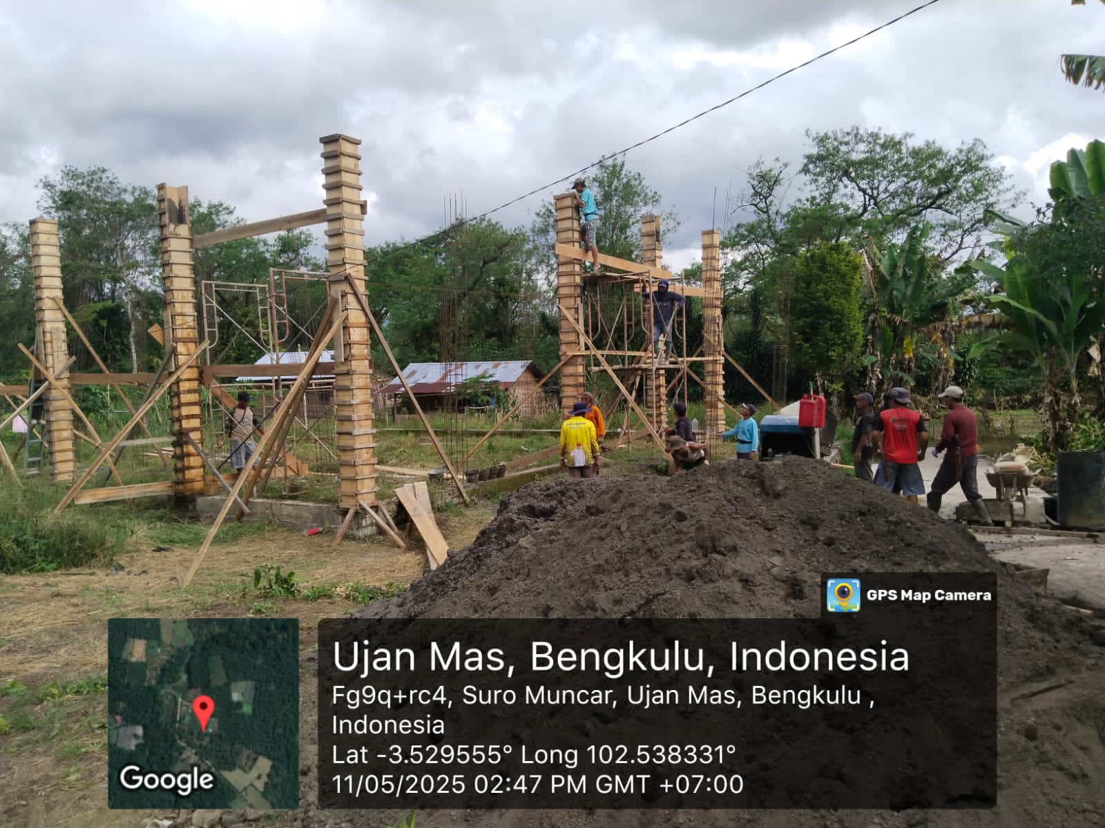 Pada Minggu pagi (11/05), masyarakat terlihat antusias melaksanakan gotong royong pengecoran tiang bangunan masjid. Salah satu tokoh masyarakat setempat, Muktarudin, mengungkapkan bahwa kegiatan ini merupakan tahap awal pembangunan.