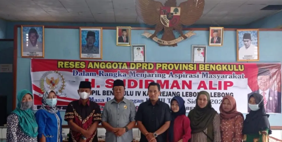 Bengkulu,Siberbengkulu.co - Anggota DPRD provinsi Bengkulu, H.Sudirman Alip menggelar reses di daearah pemilihan empat (Dapil IV) Kabupaten rejang lebong dan kabupaten Lebong masa sidang kedua (II) tahun 2022. Pada reses kali ini, tidak jauh berbeda dengan reses-reses sebelum, Sudirman, menampung aspirasi masyarakat dan akan memperjuangkan di DPRD provinsi pada saat sidang paripurna, reses tersebut diselenggarakan di balai desa, desa suka bumi, kecamatan Lebong sakti, kabupaten Lebong, pada hari rabu (20/07/2022).