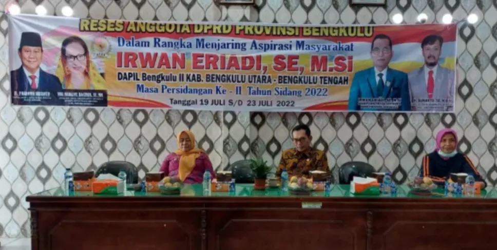 Bengkulu,Siberbengkulu,co - Anggota Komisi II DPRD Provinsi Bengkulu Irwan Eriadi, SE, M.Si, melaksanakan kegiatan reses di dua titik yang bertempat di Kantor Camat Merigi Kelindang Kabupaten Bengkulu Tengah pada Kamis, 21 Juli 2022 serta Kantor Camat Talang Empat Kabupaten Bengkulu Tengah pada Jumat, 22 Juli 2022.