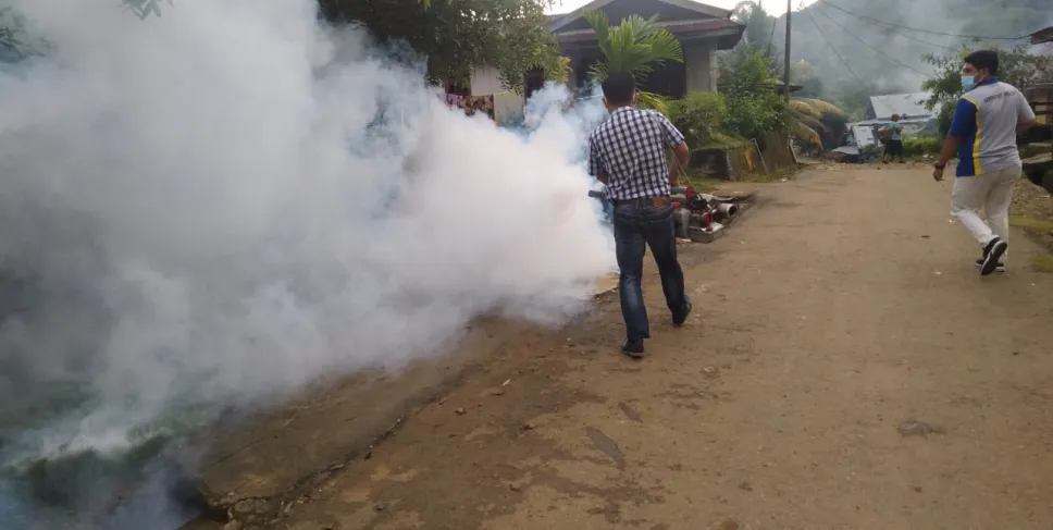 Seluma, SiberBengkulu.co -- Dinas kesehatan berkerja sama dengan puskesmas talo kecil hari ini melaksanakan kegiatan poging guna mencega penyakit demam berdara. Sebelumnya kabid Dinkes beserta tim langsung turun kelapangan guna memastikan bahwa poging di laksakan di desa sungai petai,