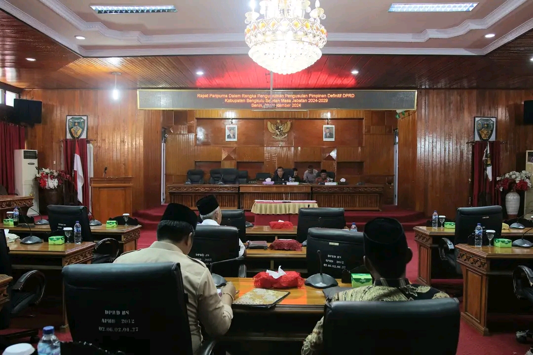 Bengkulu Selatan, Siberbengkulu.co -- Dewan Perwakilan Rakyat Daerah (DPRD) Kabupaten Bengkulu Selatan menggelar kegiatan rapat paripurna mengenai Pengumuman Pengusulan Pimpinan Definitif DPRD Masa Jabatan 2024-2029, Senin (30/09).