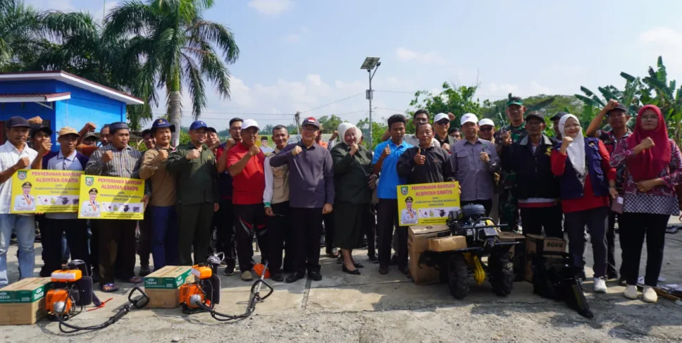 Bantuan 26 alsintan yang diserahkan secara simbolis ini meliputi 7 hand tractor, 2 kultivator, 1 dodos egrek, 2 mesin potong rumput, 6 terpal, 7 sepatu bot, dan 1 POC.