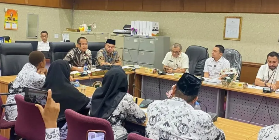 Riau, Siberbengkulu.co -- Komisi I DPRD Provinsi Riau menggelar audiensi dengan perwakilan Tenaga Guru Honorer PPPK se-Provinsi Riau di Ruang Rapat Komisi I DPRD Provinsi Riau, pada Rabu (15/1). Pertemuan ini dipimpin oleh Ketua Komisi I DPRD Provinsi Riau, Nur Azmi Hasyim, dan didampingi oleh Sekretaris Komisi I DPRD Provinsi Riau, M. Amal Fathullah.
