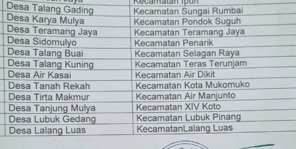 Namun demikian, sejumlah kepala desa di Mukomuko menyampaikan kekecewaannya. Salah satunya Kepala Desa Lubuk Gedang, Yunna Suardi. Ia mengaku heran karena desanya sebelumnya sudah masuk dalam usulan resmi dari Pemkab Mukomuko berdasarkan permintaan Gubernur Bengkulu.